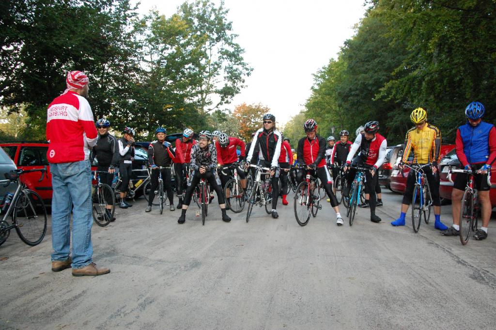 Der Wetterbericht las sich durchaus gemischt, aber zum Start um 8:00 Uhr ab Aumühle war es trocken. Langsam fahren kann ich gut, das kriegt man auch ohne großen Trainingsaufwand hin. Und ich habe das Jahr über wirklich wenige Kilometer gesammelt. So bildete sich rund um mich herum dann die letzte Gruppe, gut zehn Fahrer und Fahrerinnen.